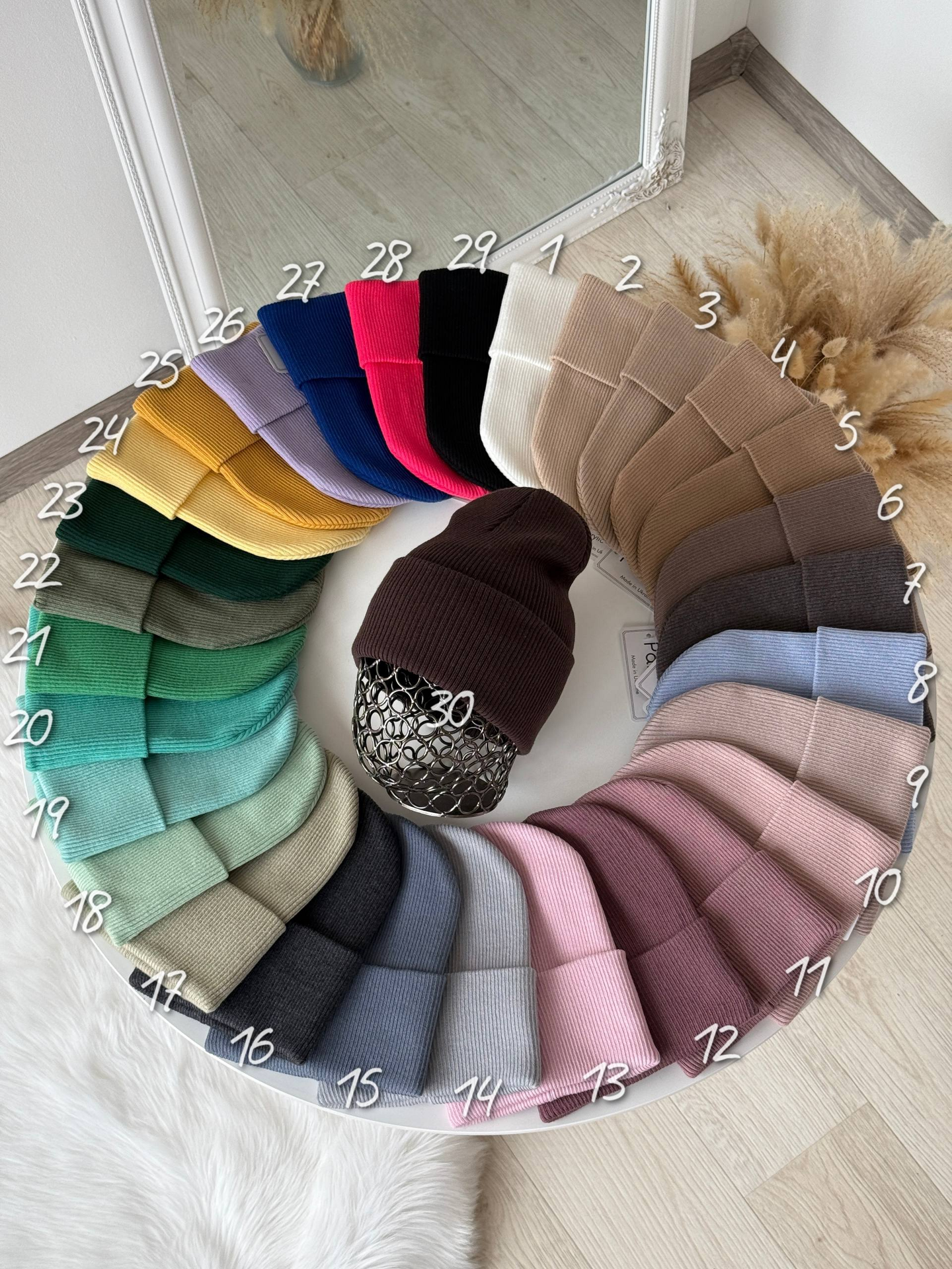 • Палітра: Доступна у 6 кольорах (як на фото: пудровий, білий, чорний, бежевий, коричневий та ін.).