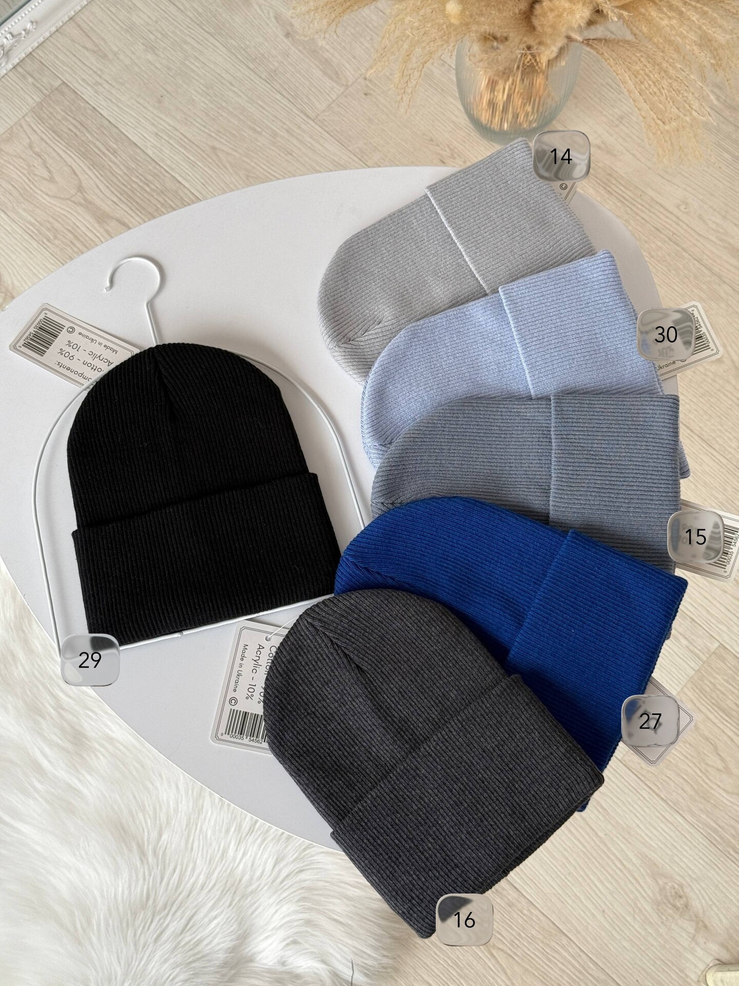 • Склад: 50\% бавовна, 50\% акрил — комфортна, м'яка, добре тримає форму.